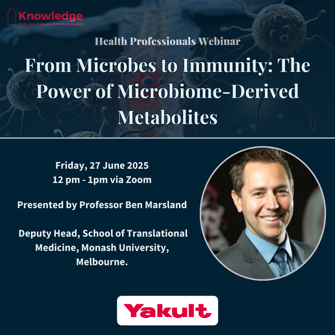 Join us for the upcoming Yakult Knowledge Webinar on June 27, 2025, from 12–1 PM AEST, with our guest speaker Professor Ben Marsland from Monash University.