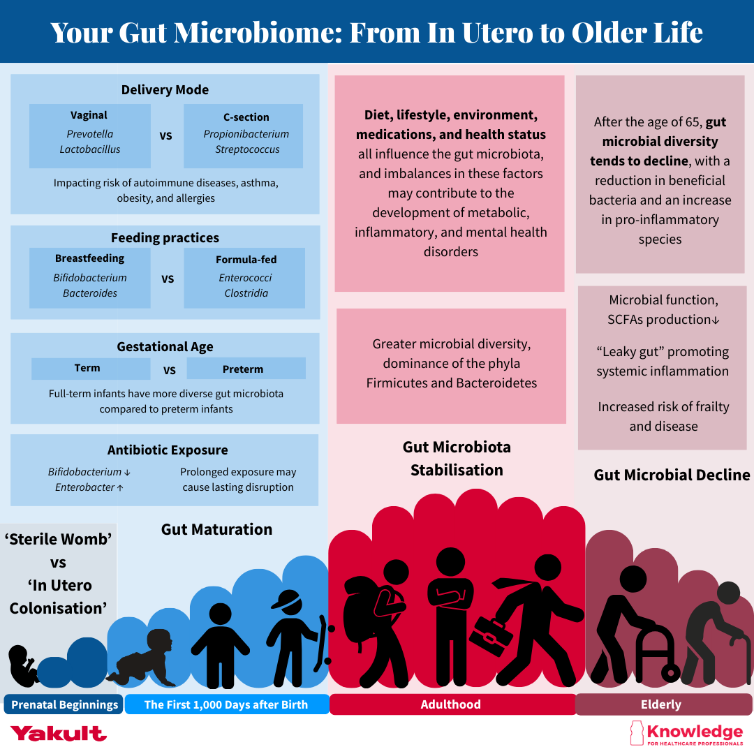 The gut microbiome plays a foundational role in human health across the lifespan. From early development in utero to the ageing process in older adults, shifts in microbial diversity and composition impact immunity, metabolism, and risk of disease.